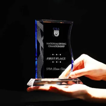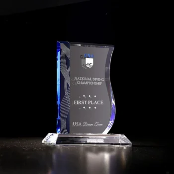The Elegance Blue Award combines Clear Optic Crystal with a Blue Crystal accent strip. It is available in two sizes and comes with a Clear Optic Crystal Base and each Elegance Award comes in a premium quality presentation box.