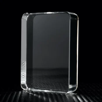The Elora Paperweight is manufactured from the finest quality K9 Clear Optic Crystal. This highly polished rectangular paperweight with rounded corners measures 2-1/2” wide x 3-1/2” long and is 3/4” thick. Each Elora Paperweight is shipped in a premium quality Black presentation box.