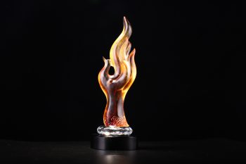 This crystal art represents fire and would be a perfect for any occasion or just as a show piece mounted on a Black Crystal Base.