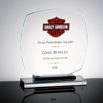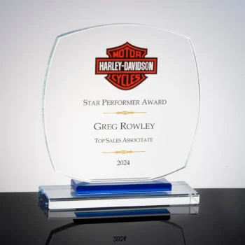 The Gemini Squareround is an economy priced award manufactured from 12mm (1/2”) thick Crystal Clear Glass and is attached to a double tiered Crystal Clear base andCrystal Blue/Black base. This award combines the shapes of a square and a round circle in combination forming a “Squareround”. It is available in two sizes. The Gemini Award Series is perfect for abrasive etching, CO2 surface laser engraving, sub surface laser engraving, and is an excellent candidate for UV full color printing. This series is sold as a blank product, or if you prefer we can do the engraving or printing for you. Insta Crystal ships all over USA.