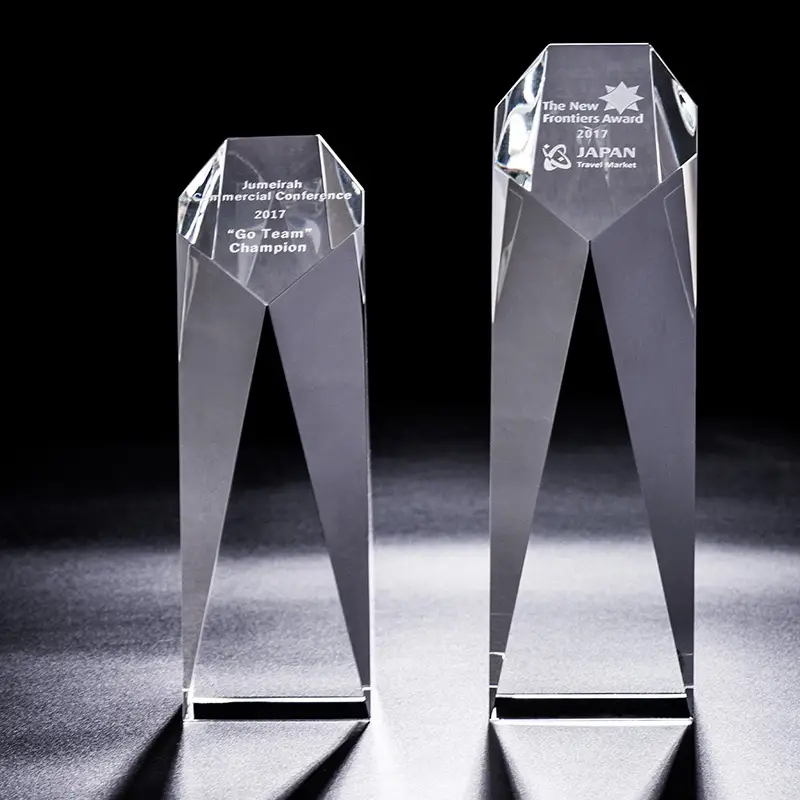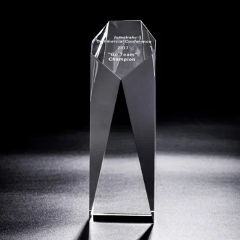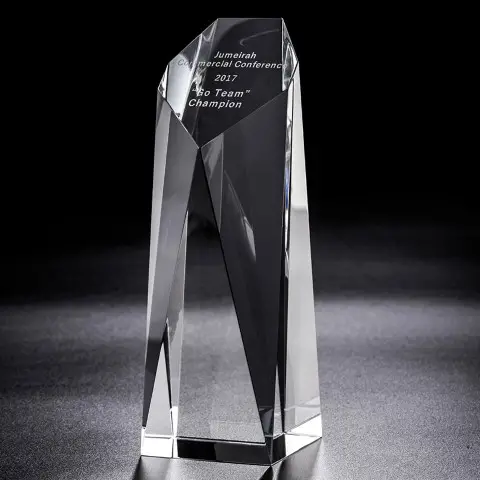 The Gryffin Tower Award with its multiple tapered bevels is an eye catching timeless design. The slant face is the perfect surface for engraving the event. Manufactured from only the finest K9 Optic Crystal, the Gryffin Tower Award is available in two sizes. Each is shipped in a premium quality Black presentation box.