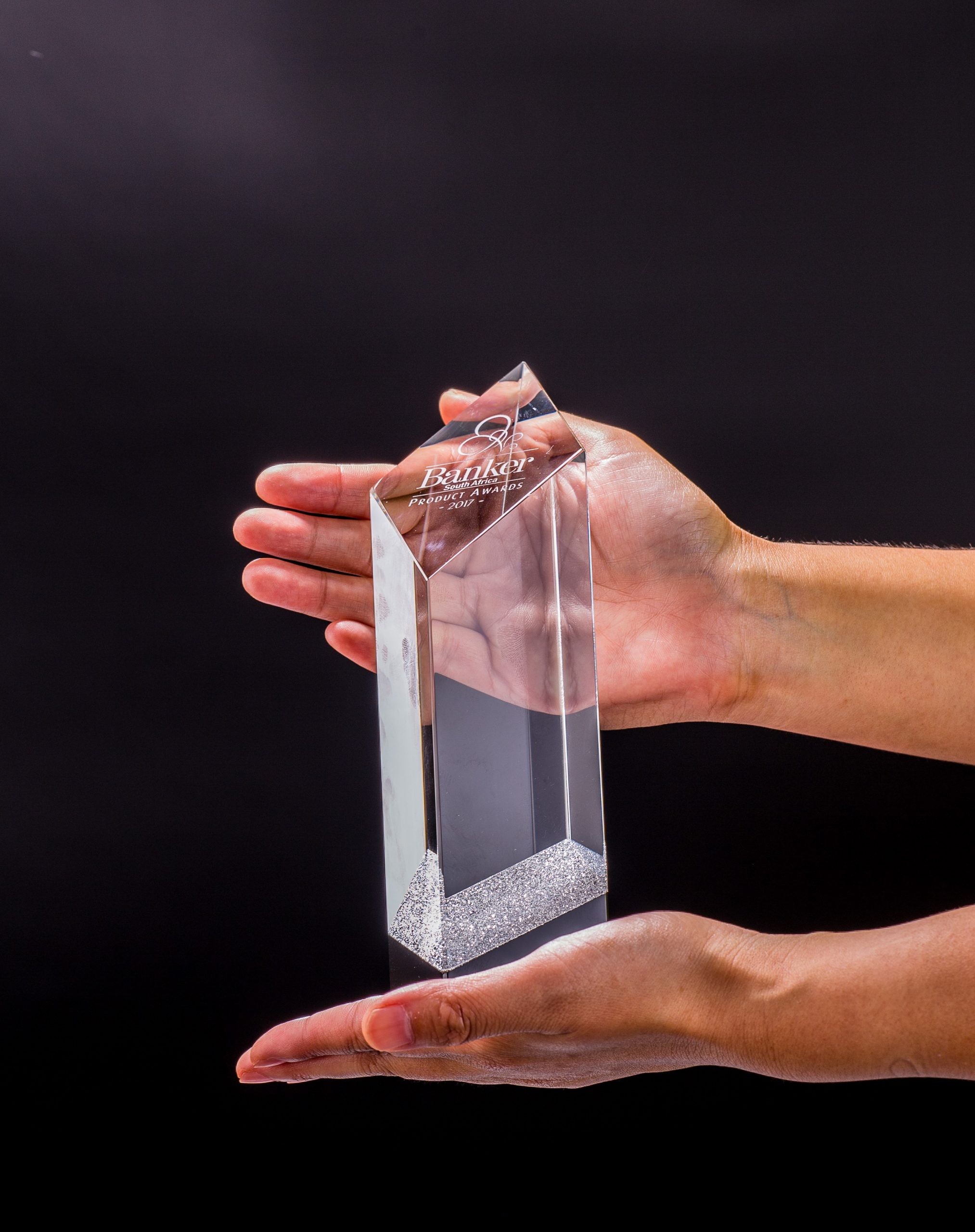 The Maleah Tower is created from portion Optic Crystal with a slant flat surface making the top portion appear to float. The award is inlaid with silver dust between the tower and black crystal base. Available in two sizes and comes in a premium quality presentation box.