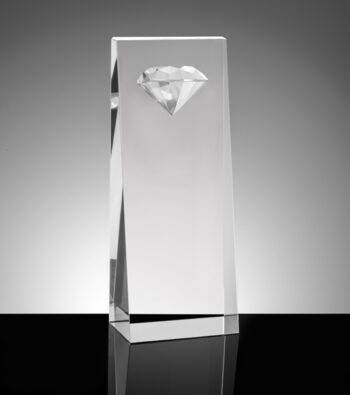 The Marley golf Tower is a narrow version of the popular Marley Award with a crystal golf ball . This wedge shaped vertical self standing tower is manufactured from the finest quality K9 Clear Optic Crystal. The Marley Tower is available in two sizes and is shipped in a premium quality Black presentathe tion box.