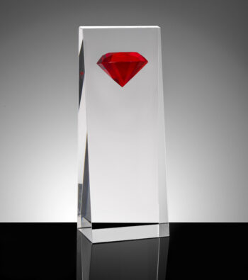 The Marley golf Tower is a narrow version of the popular Marley Award with a Blue Diamond. This wedge shaped vertical self standing tower is manufactured from the finest quality K9 Clear Optic Crystal. The Marley Tower is available in three sizes and is shipped in a premium quality Black presentation box.