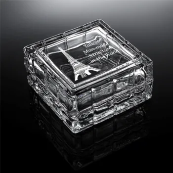 Square Trinket Box & Lid, 3-5/8” x 3-5/8”, Lead Free Molded Glass, Gift Boxed.